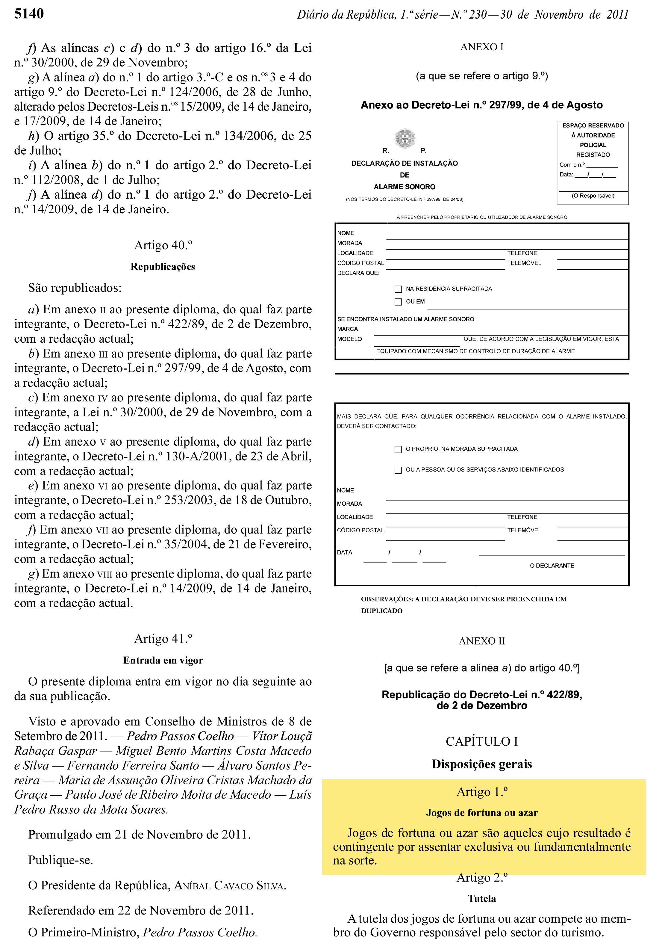 O Decreto-Lei n.º 422/1989 de 2 de Dezembro, define jogos de fortuna ou azar como “aqueles cujo resultado é contingente por assentar exclusiva ou fundamentalmente na sorte”.